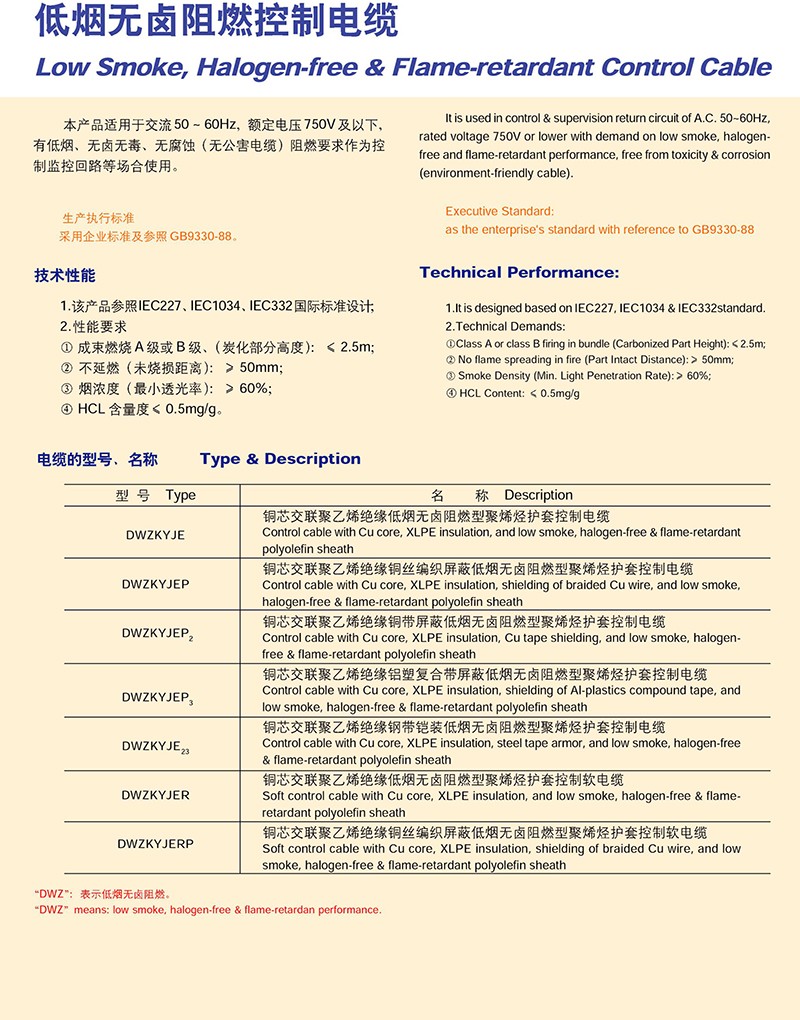 低煙無鹵阻燃控制電纜