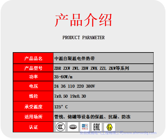 電伴熱帶(自限溫系列)中溫系列